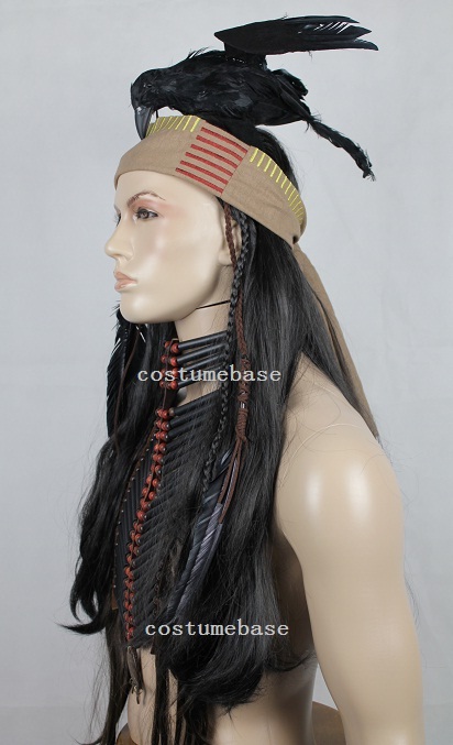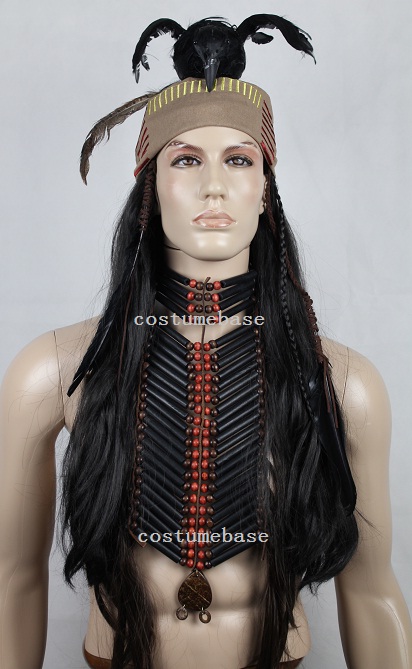 This listing is for the Tonto chest plate. the beads and tube are all made of wood. The wig is made of Kanekalon fiber while the strap is made of genuine leather. When lay on surface,